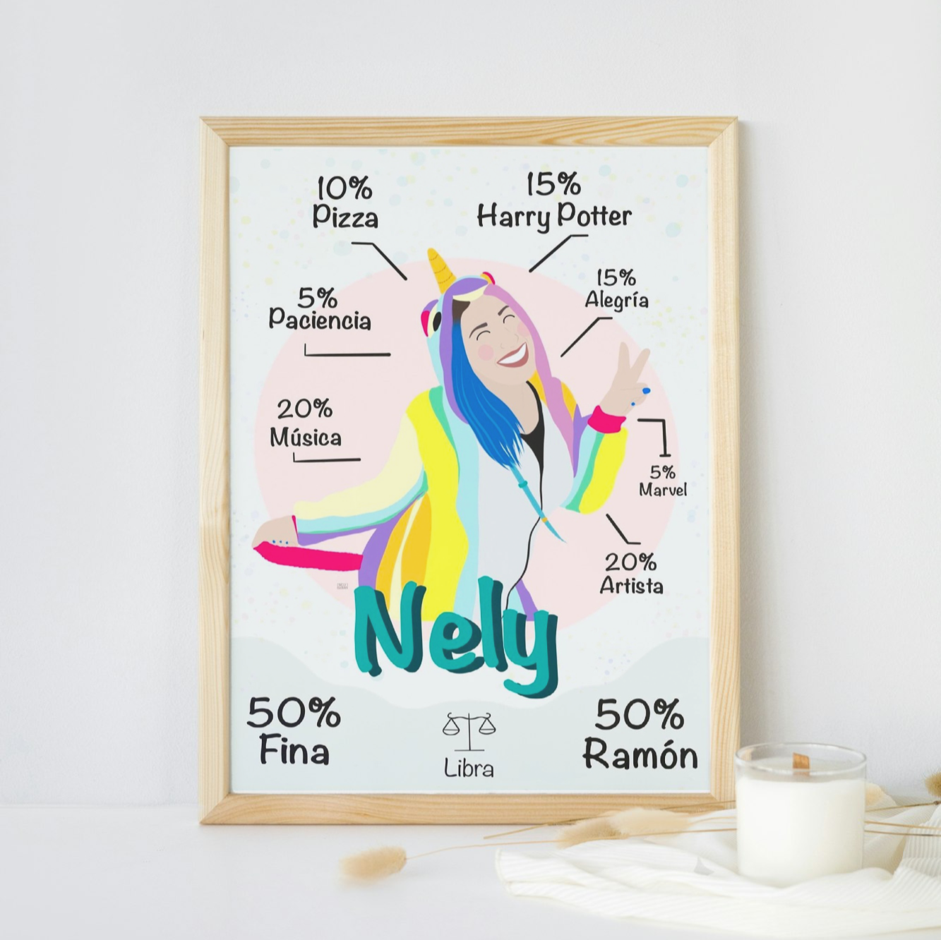 Ilustración súper personalizada sobre una persona, de la manera más divertida y colorida.