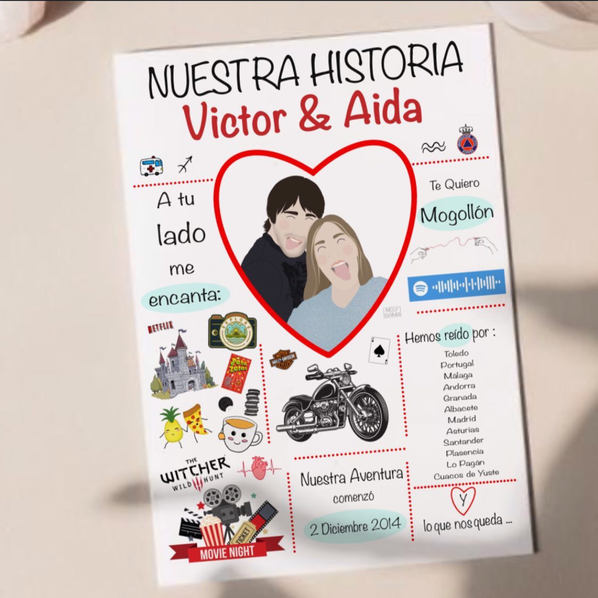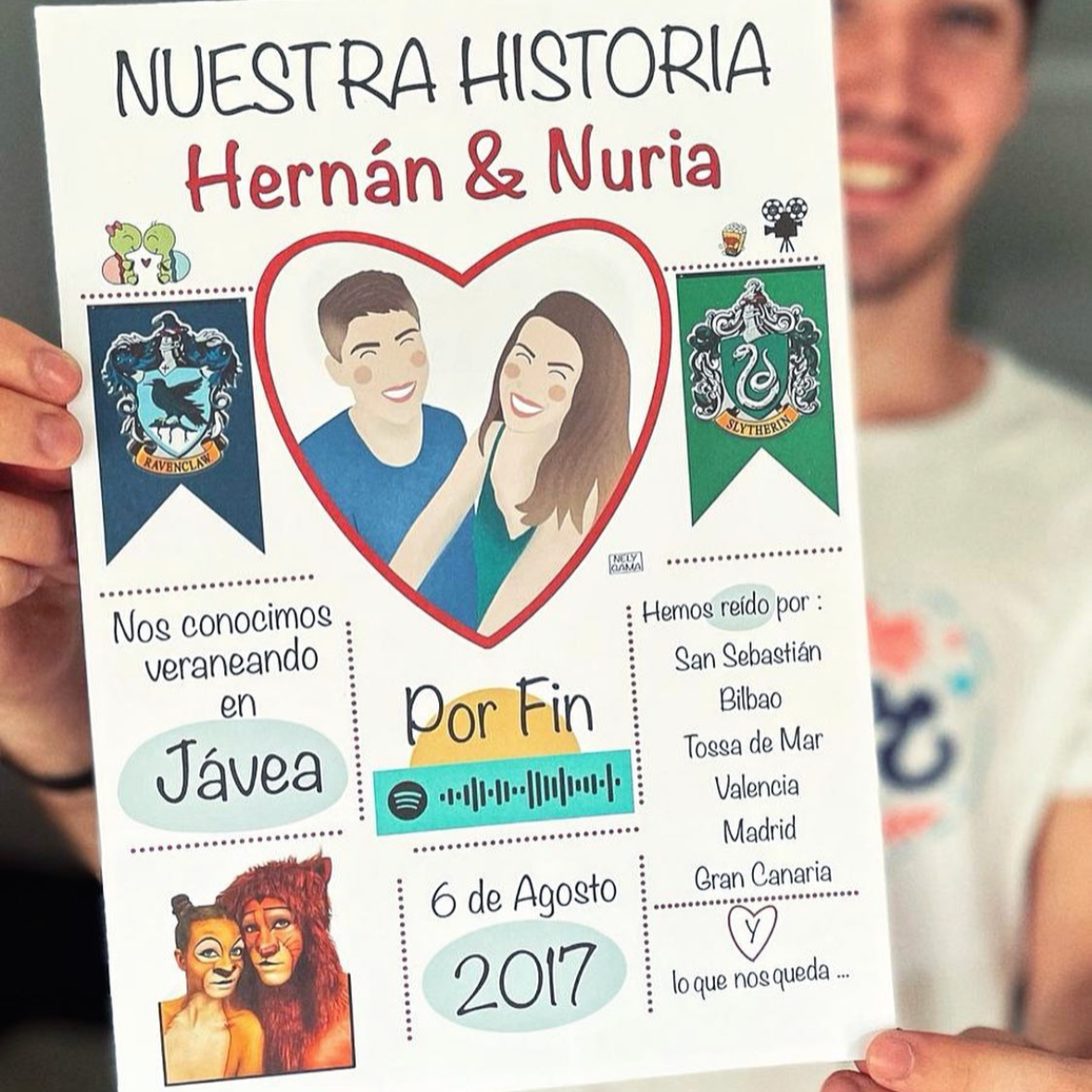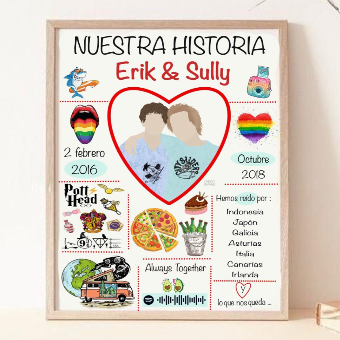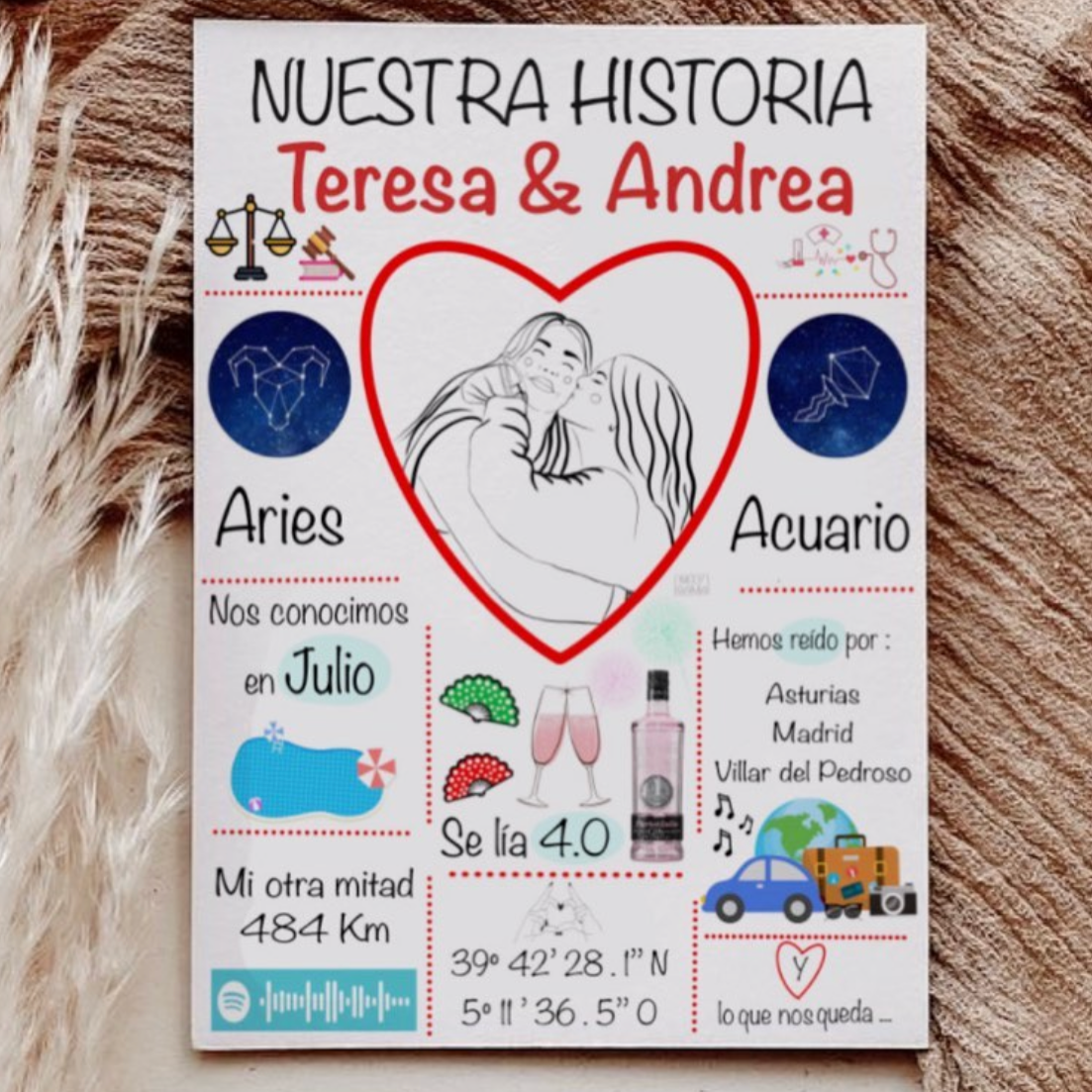 Cuento la historia de amor de 2 personas, parejas, amig@s ... etc ... con una ilustración única, rodead@s de los momentos más especiales e importantes.
