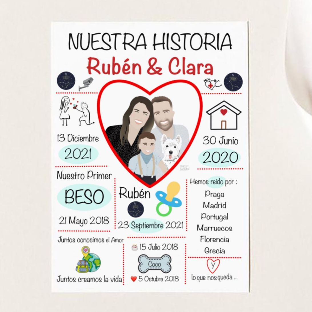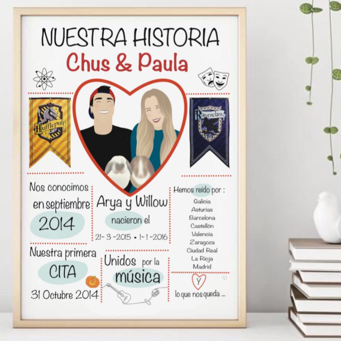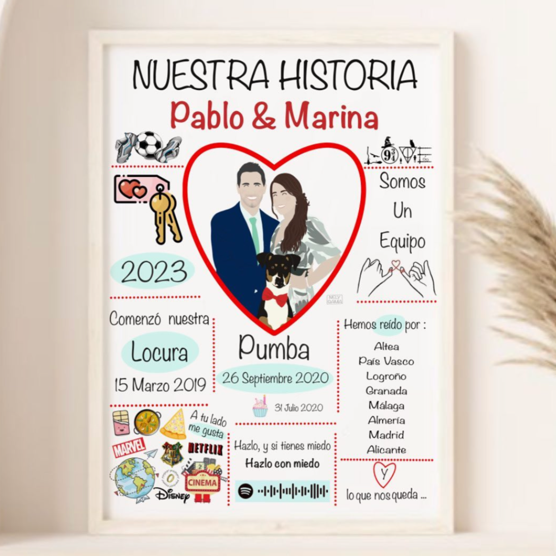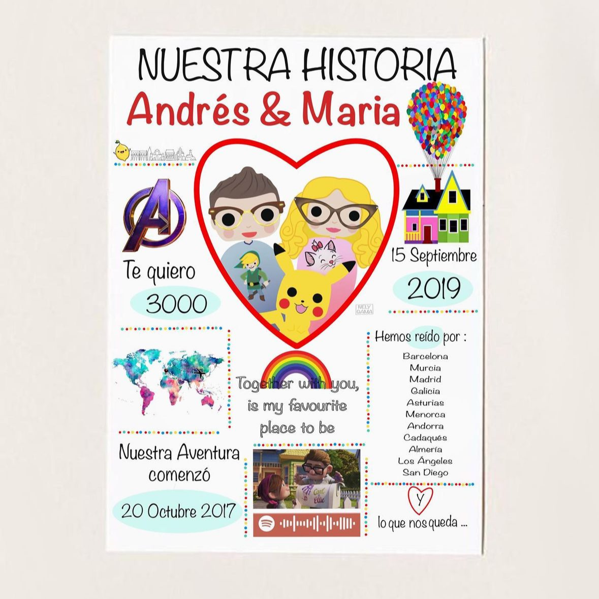 Cuento la historia de amor de 2 personas, parejas, amig@s ... etc ... con una ilustración única, rodead@s de los momentos más especiales e importantes.